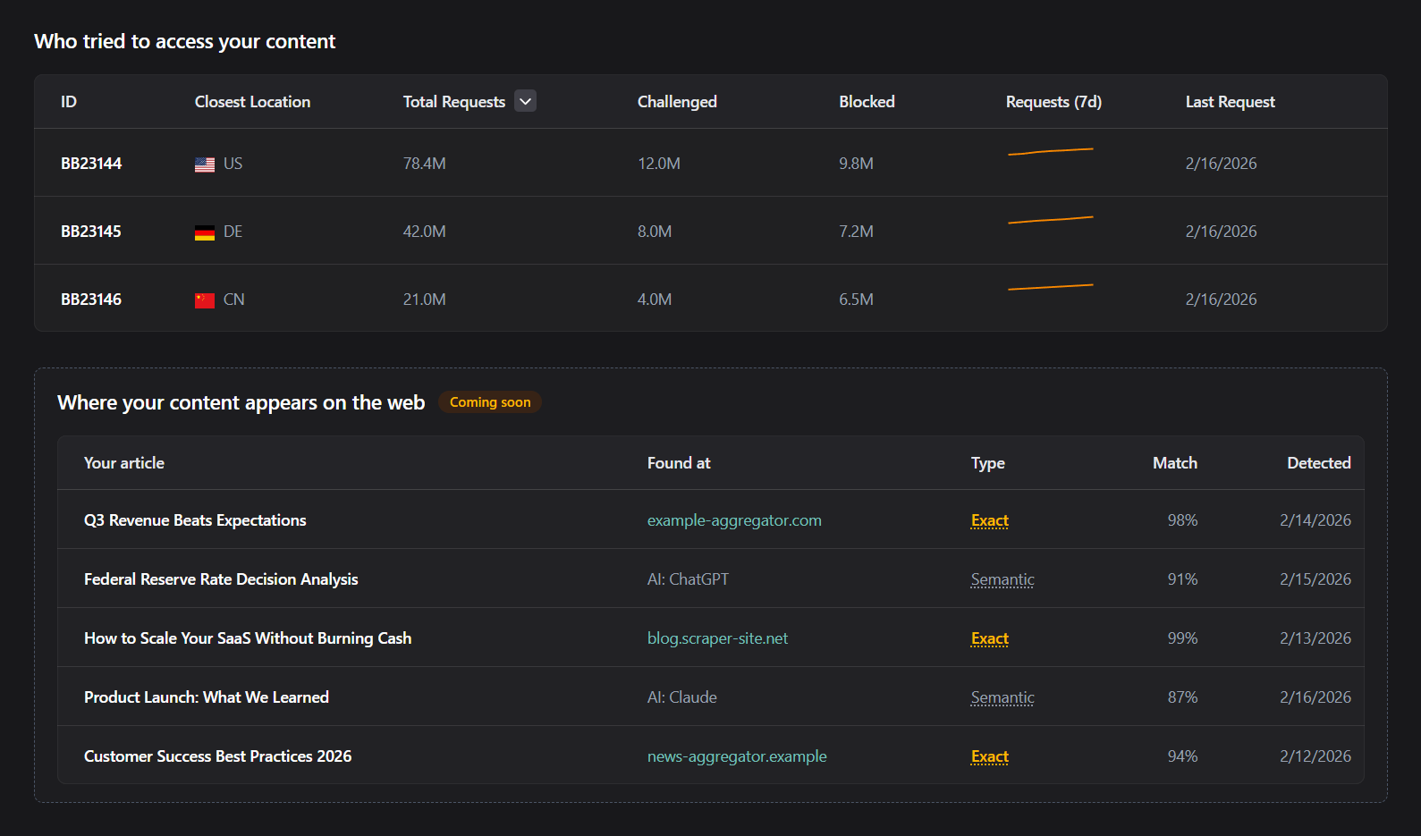 - Stop AI companies and competitors from scraping your articles, stories, and editorial content. Protect your intellectual property from being used to train models or resold without permission.